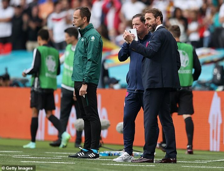 Holland nonetheless paid tribute to the rest of Southgate's team earlier in the tournament, saying: 'We have a staff that all contribute. It would be wrong for me to say this is a me and Gareth gig.