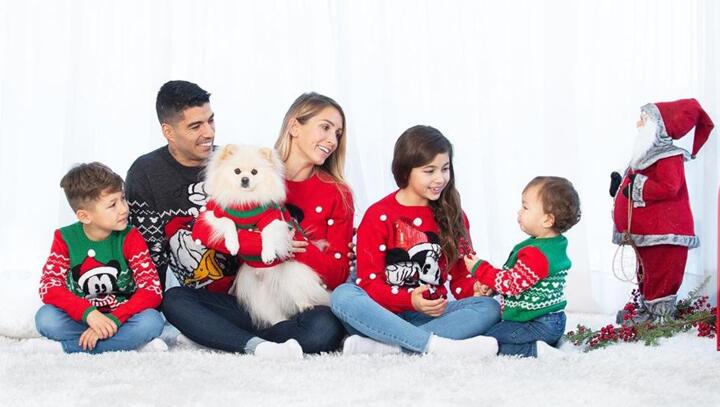 “ Counting the days..”, wrote Suarez's wife, attaching a family image with her children Delfina, Benjamin and Lautaro and her dog dressed in Christmas themed sweater.