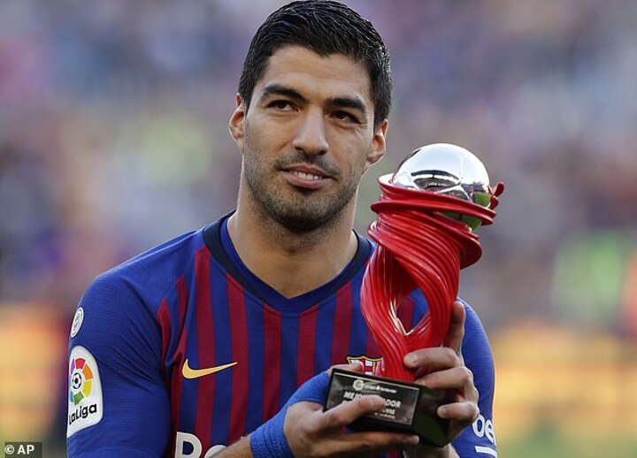 Luis Suarez was all smiles alongside his three children on Sunday afternoon as he collected La Liga's Player of the Month award for October.