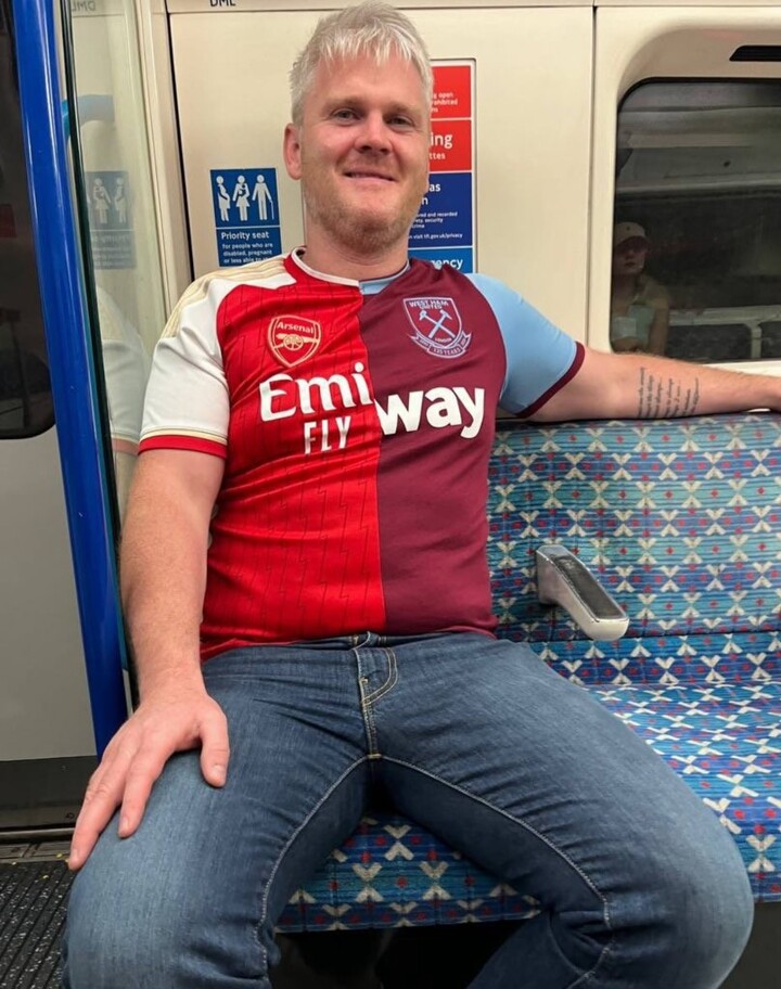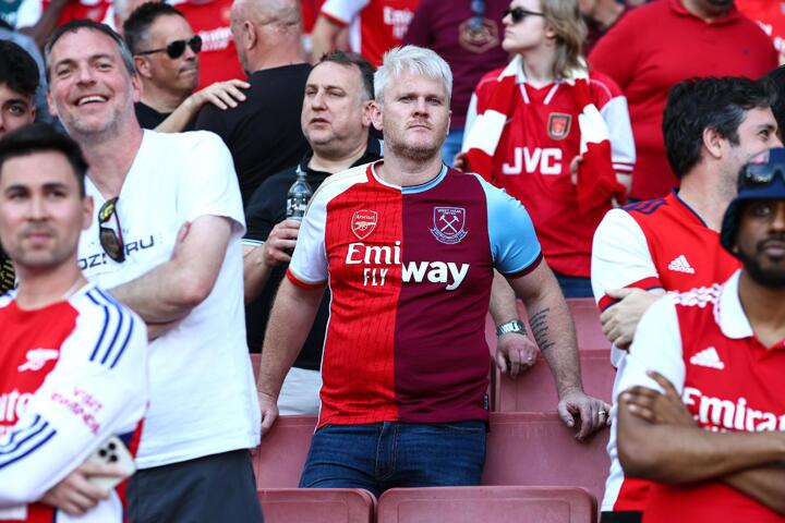 And one of the Emirates faithful showed his support for the East Londoners by wearing a half-and-half home top.