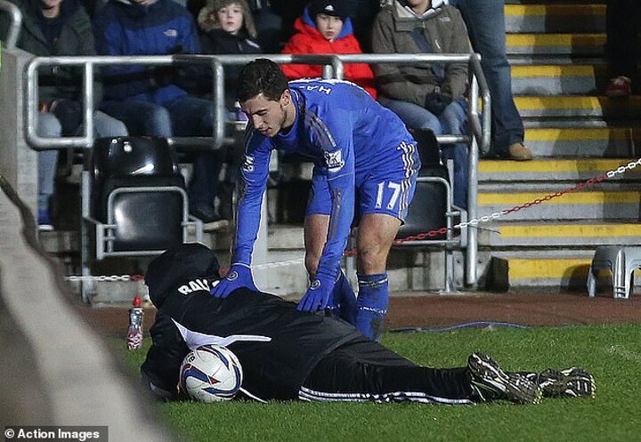He fell to the ground as Hazard attempted to get the ball from him, with the Belgium star then trying to kick it from under him.