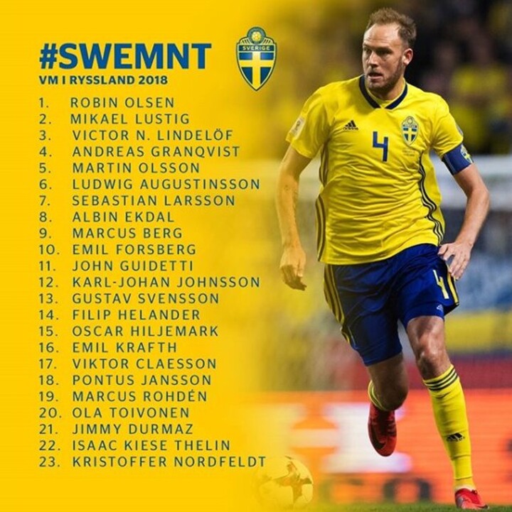 Sweden announce their 23-man World Cup squad.