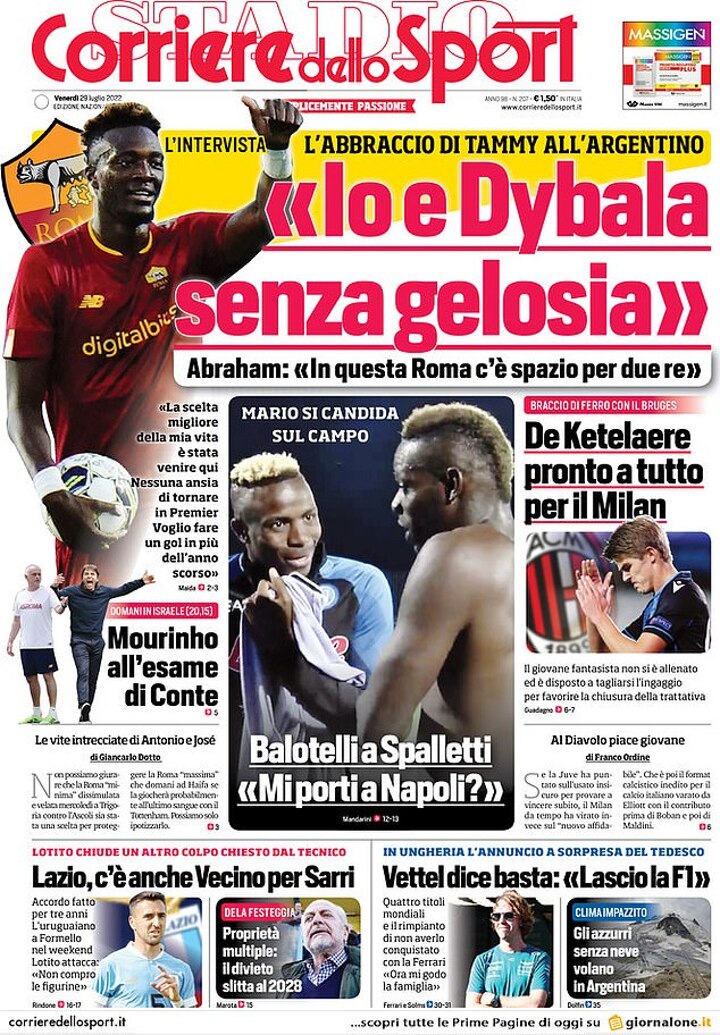 When asked if Dybala's arrival would affect Abraham's standing at the club, the former Chelsea man said: 'There can be two kings in Rome. I think it's a privilege to have such a strong player become part of our team.'