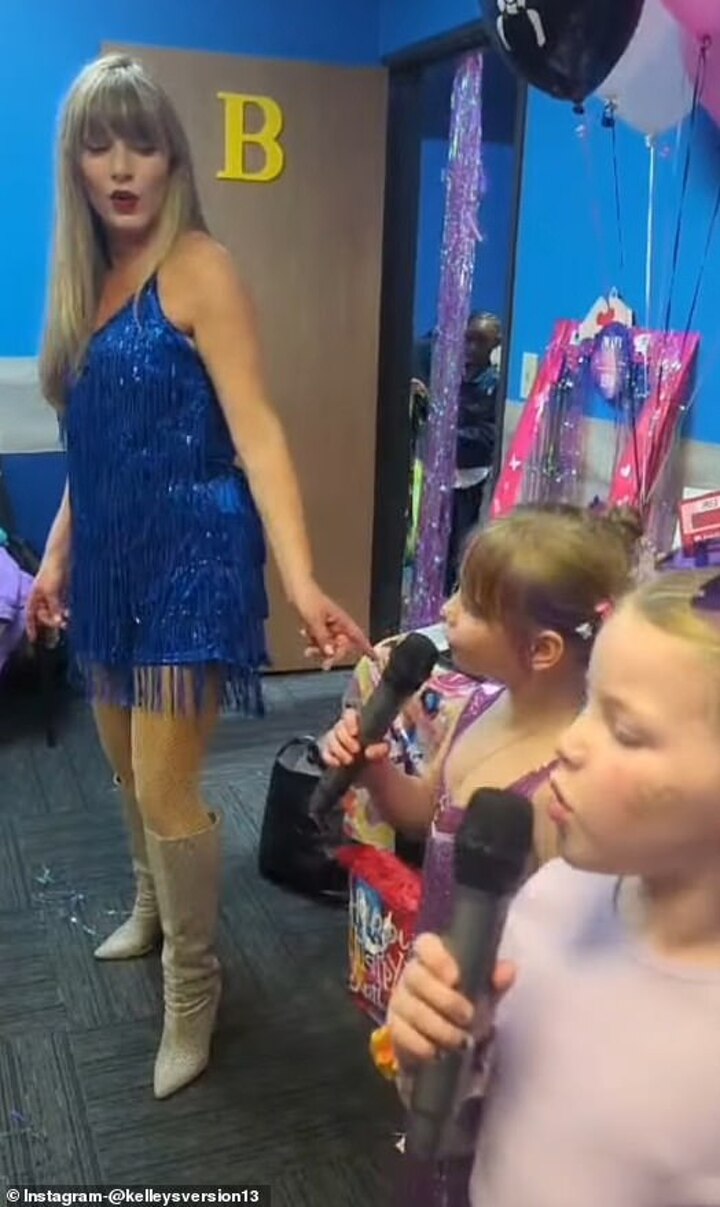 In reality, it was not Swift but a tribute act named Kelley Thrasher, who goes by 'Kelley's Version' and calls herself 'Kansas City's official Taylor Swift Doppelganger.'