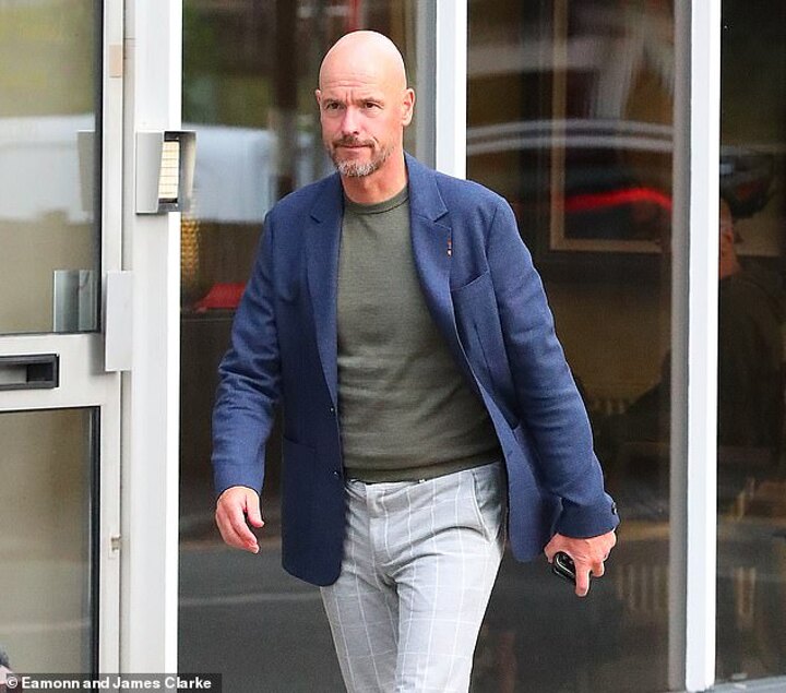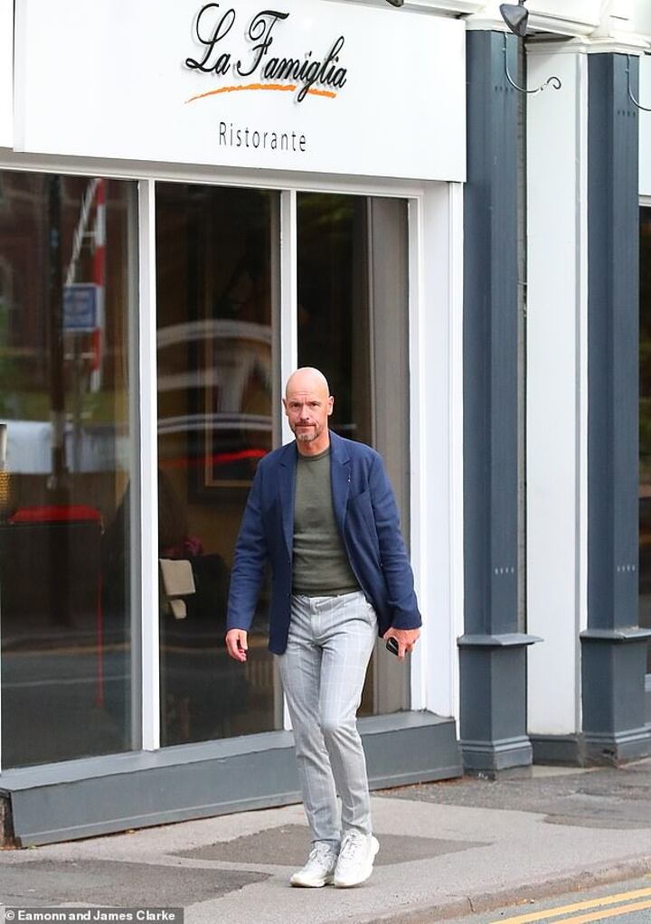 Ten Hag appeared to make the most of his final evening before the serious work gets underway, as he was pictured outside the La Famiglia Italian restaurant in the village of Hale in Cheshire on Wednesday.