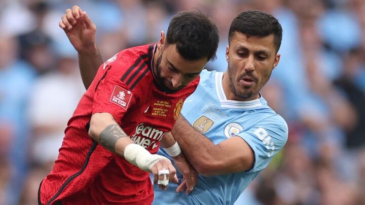 Guardiola reacted to City's sluggish performance with a double change at the break as Manuel Akanji and Doku replaced Mateo Kovacic and Nathan Ake. The champions were looking for an instant response and they almost got one through Haaland, but his strike rattled the crossbar as United's two-goal advantage stayed intact.