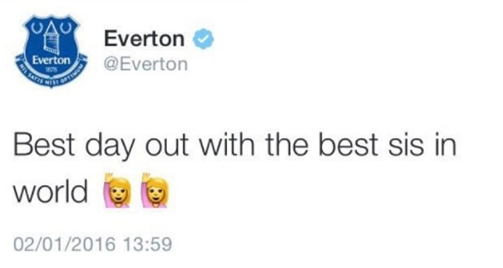 The day before the Toffees were due to play Tottenham in the Premier League, the official club Twitter page posted 'Best day out with the best sis in the world' which baffled both Everton fans and football supporters in general.