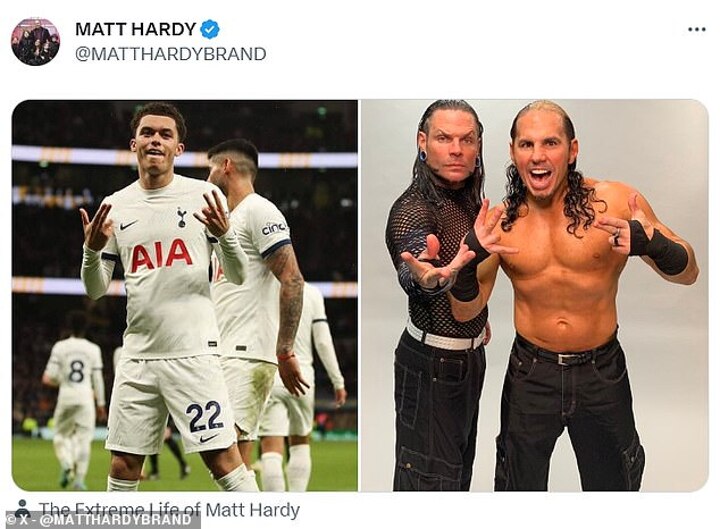 WWE legends Jeff Hardy and brother Matt - AKA The Hardy Boyz - have responded after Brennan Johnson replicated their famous celebration after he scored the winner in Tottenham's weekend clash against Brighton.