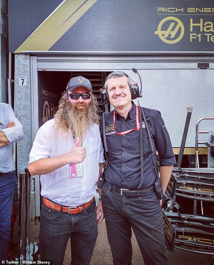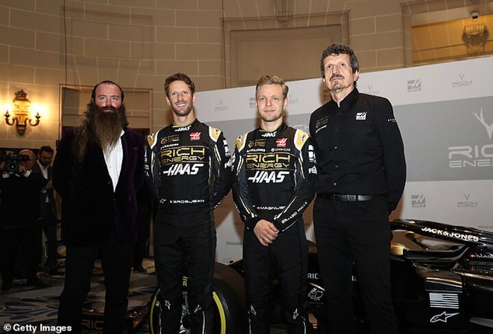 There was team principal Guenther Steiner, drivers Kevin Magnussen and Romain Grosjean and the happy-go-lucky Storey, his beard as striking as ever. There were lots of smiles, and the car's livery had changed to the black and gold to mirror Rich Energy's brand colours.