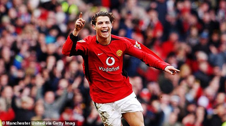 Aged 18, Ronaldo joined United from Sporting Lisbon in a deal worth £12million. Small and thin in stature, his gangling frame in old photos strikes a stark contrast to the imposing physique that more recently secured him five Ballon d'Or awards.