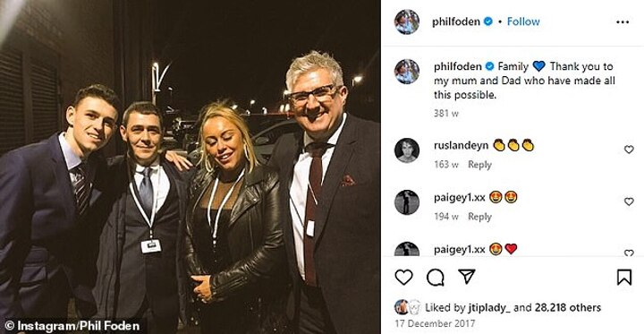 Towards the end 2017, just a year after Foden had broken on to the scene as a teenager at City, the young midfielder thanked his mother Claire and Manchester United-supporting father Phil Foden Sr. for the support they gave him during his journey into football.