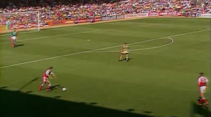 After checking his passing options, and with absolutely no pressure on the ball, Dixon lifts the ball back towards his own goal for Seaman to collect.