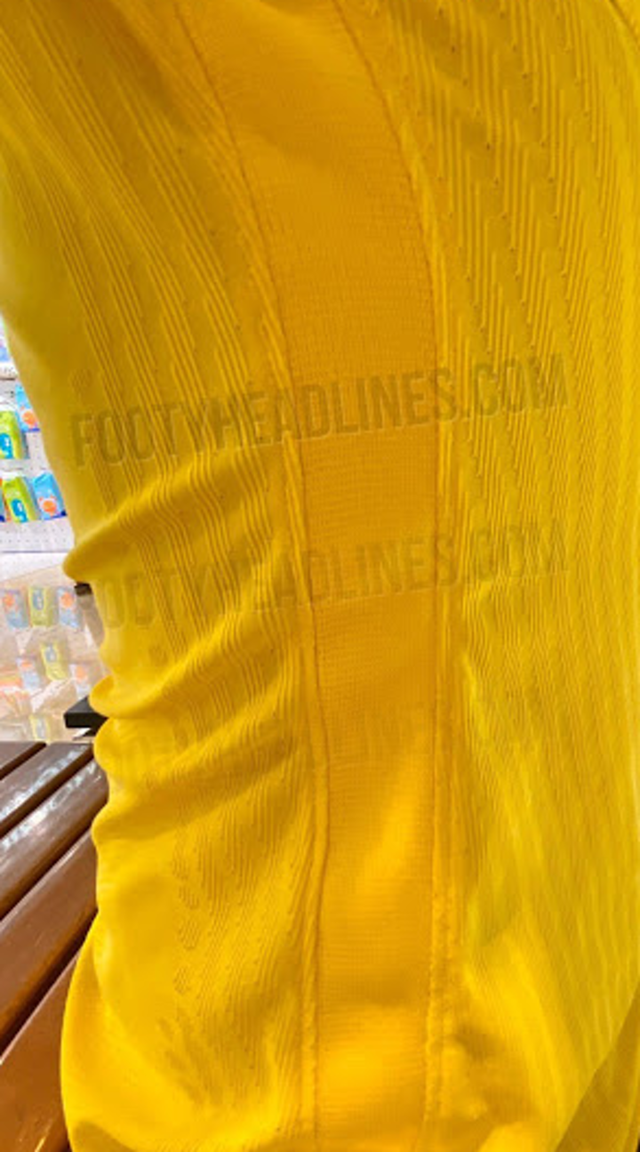 Although it's based on the new Nike template, which in turn is inspired by early 2000s Nike designs such as the 2002 template, the Brazil Copa America 2020 home jersey does not have zig-zag stripes on the side. Instead, the collar and sleeve cuffs of the shirt are green with a diamond graphic that's derived from the Brazilian flag on the inside.