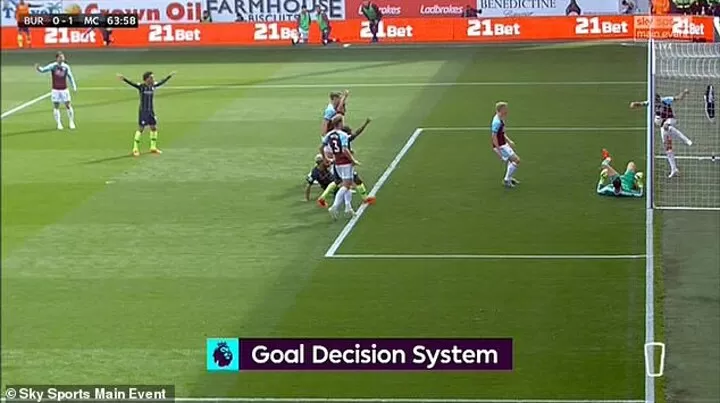 Replays showed that Aguero's effort went over the line despite the best efforts of Burnley defender Matthew Lowton.