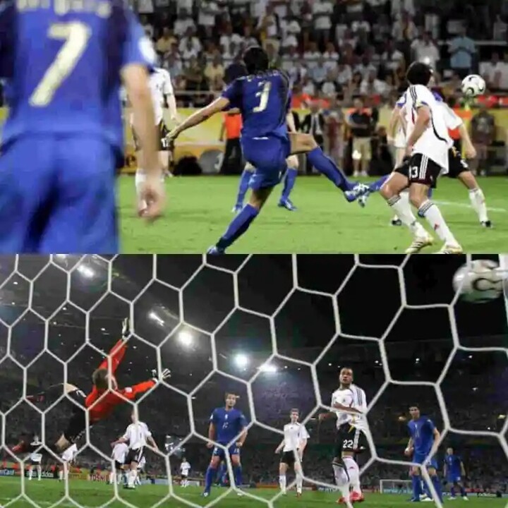 With just 3 minutes left to play, Italy won a corner and it was delivered into the box, the ball was cleared but as far as Andrea Pirlo who gathered the ball in front of the 18-yard box and with four touches, dribbled to the right channel. Without looking up, he passed the ball with the inside of his foot to an unmarked Fabio Grosso, who swung his foot at it. Bang!!! it went into the back of the net.