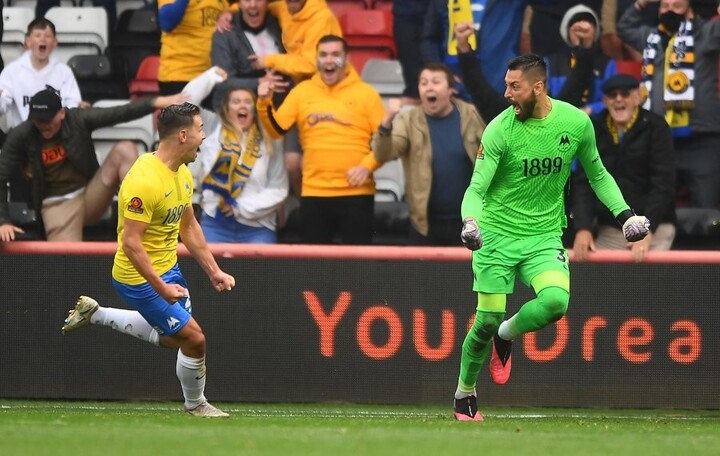 Torquay goalkeeper Lucas Covolan does his best Alisson Becker impression in the National League play-off final, scoring an equalizer in the 95th minute.
