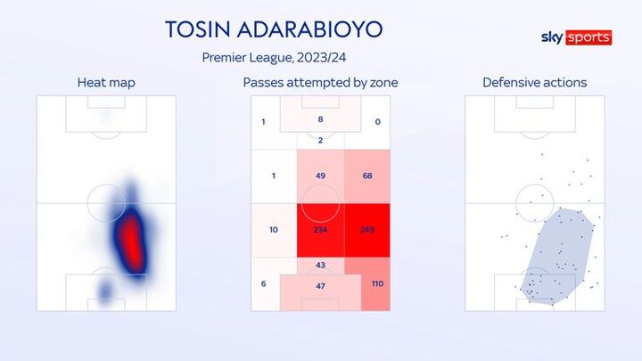 Tosin has won more defensive duels (67.37%), interceptions per 90 minutes (1.5) and clearances per 90 minutes (4.99) than all of them, and he also has more headed clearances per 90 minutes (3.33) than any other centre-back in the Premier League to have played more than four games.