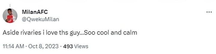 Even bitter rivals couldn't resist showing affection for the forward, with one Arsenal fan writing: 'Aside rivalries I love this guy, so cool and calm.'