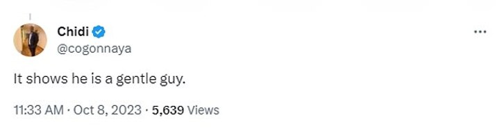 'Great to see this,' commented one fan remarking on the 'respectful' gesture, while another said it showed he was a 'gentle guy.'