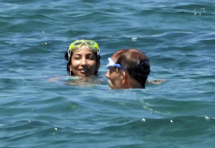 “They went swimming, chilled on the beach, lunched in the hotel's restaurant and got a boat to the island of Caprera.”