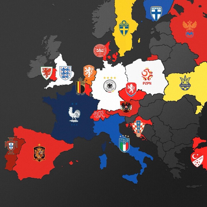 Austria, Belgium, Croatia, Czech Republic, Denmark, England, Finland, France, Germany, Italy, Netherlands, Poland, Portugal, Russia, Spain, Sweden, Switzerland, Turkey, Ukraine, Wales.