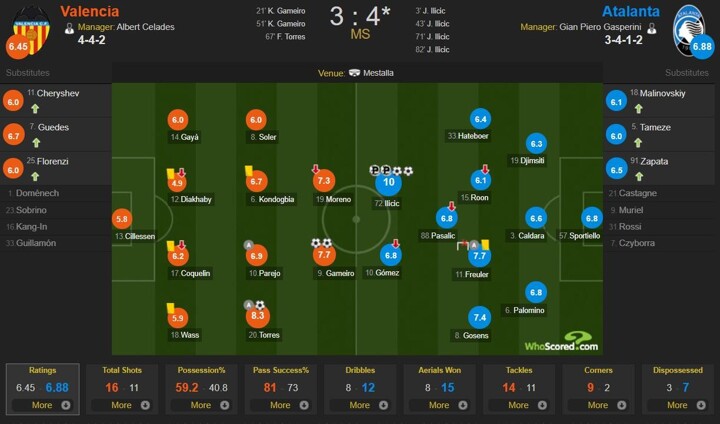 82' GOAL! Valencia 3-4 Atalanta (Ilicic)