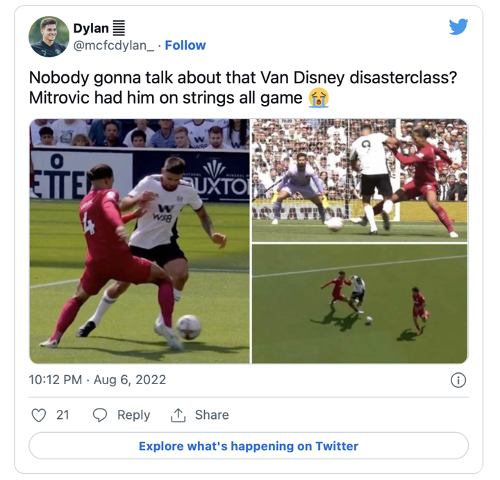 Virgil van Dijk is being called 'Van Disney' on social media after a poor performance in Liverpool's 2-2 draw with Fulham.