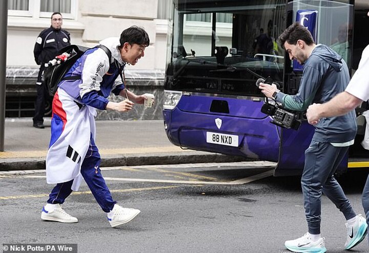 Club captain Son emerged wearing a club tracksuit with a South Korean flag tied around his waist.
