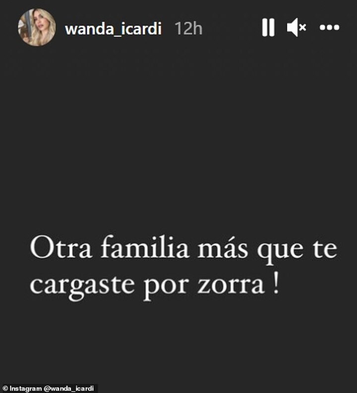 She posted on her Instagram story on Saturday night: 'Another family you have ruined for a s***' before unfollowing Icardi on social media.