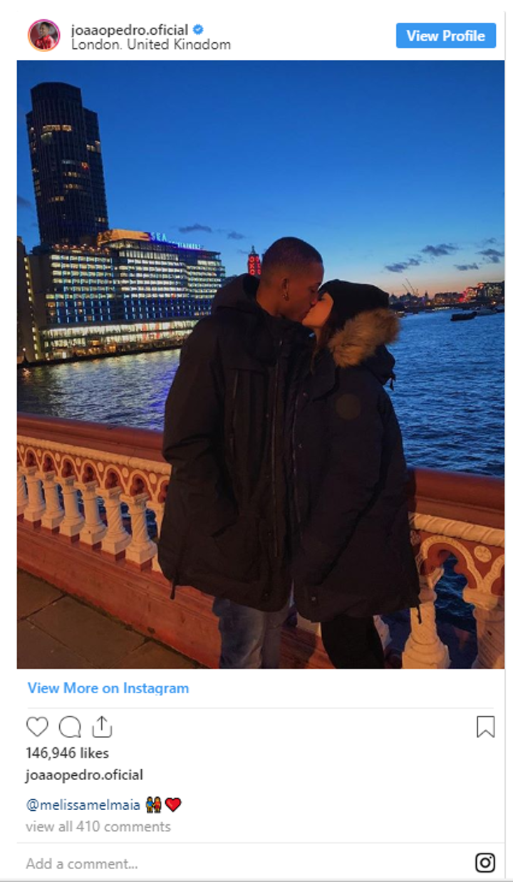Pedro completed his transfer to Watford last month after the deal was originally arranged in October, and uploaded a picture of him kissing Maia on London's Southwark Bridge a week ago.