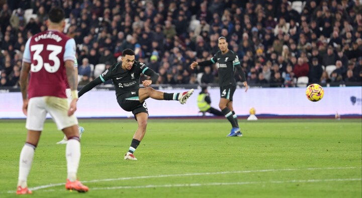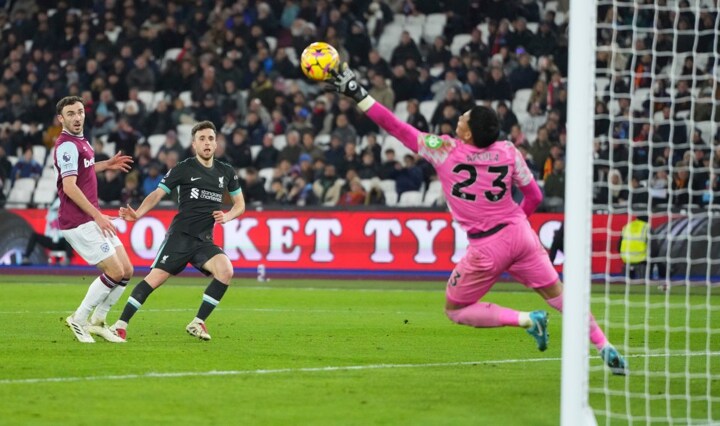 Liverpool’ keeper Alisson, barely troubled all game, was saved by his left post as Mohammed Kudus came agonisingly close to grabbing a leveller and after that, it was downhill all the way for West Ham