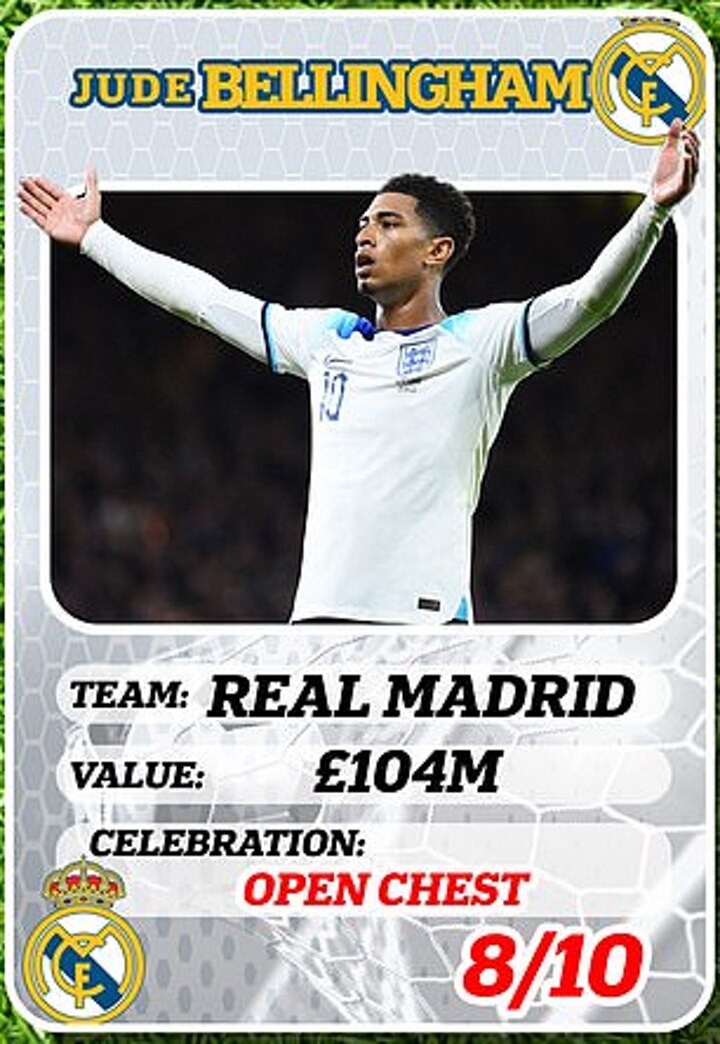 Age: 20 Club: Real Madrid Value: £104m (Transfermarkt), Celebration: Open Chest Rating: 8/10