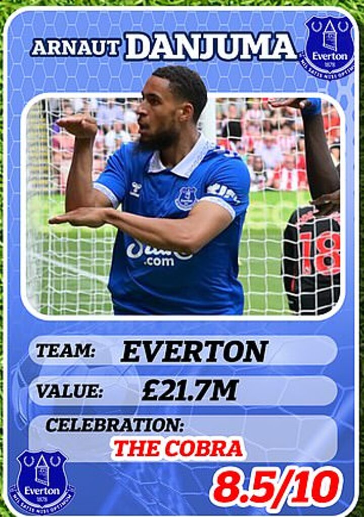 Age: 26 Club: Everton Value: £21.7m (Transfermarkt), Celebration: The Cobra Rating: 8.5/10