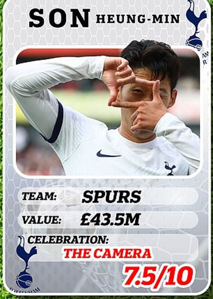 Tottenham star Son Heung-Min is known for shaping his fingers into the motion of taking a photo with a camera when he scores.