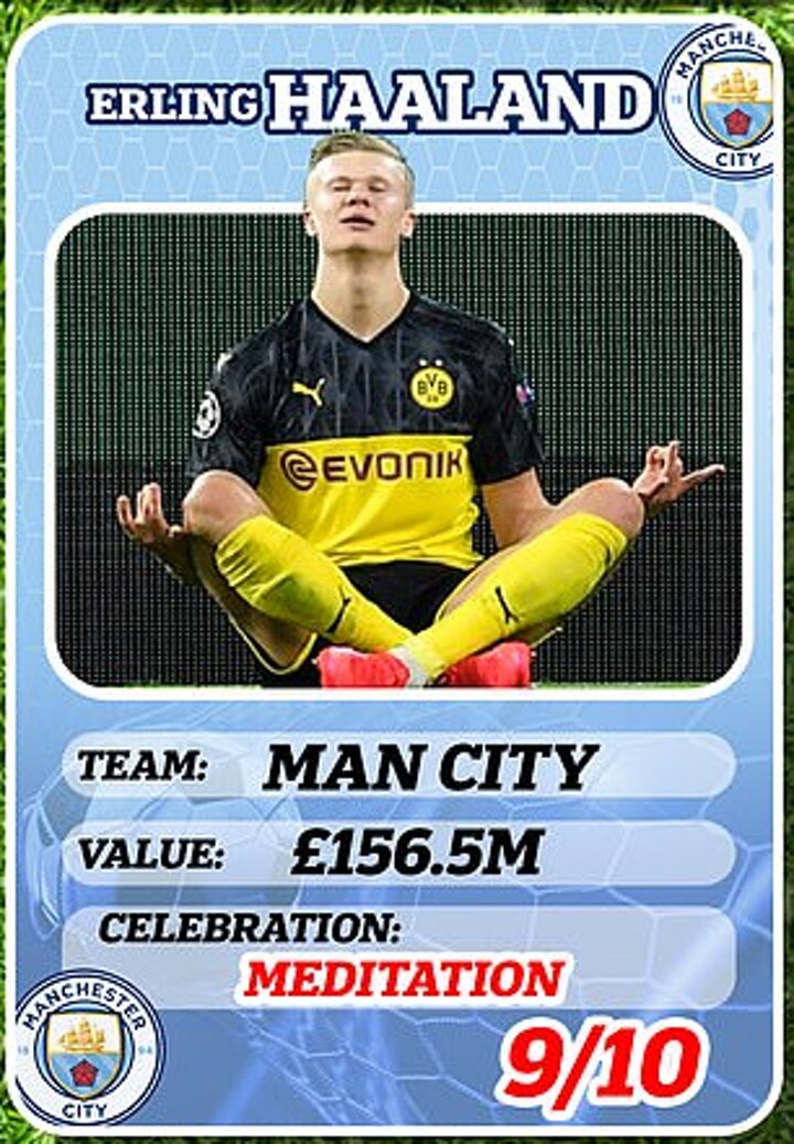 Age: 23 Club: Man City Value: £156.5m (Transfermarkt), Celebration: Meditation Rating: 9/10