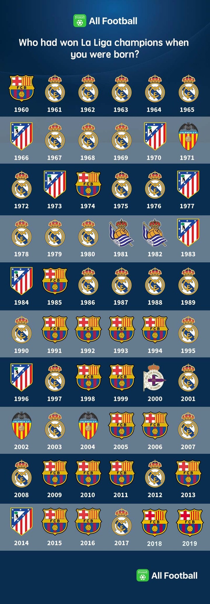 The La Liga will return tonight! So who had won the La Liga title in the year you were born?