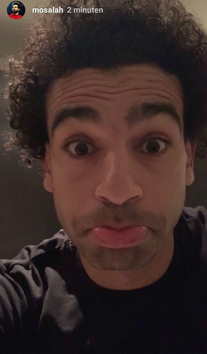 Salah posted a picture of him with a shaved face on Sunday morning - with two emojis showing a man with a hand over his face.