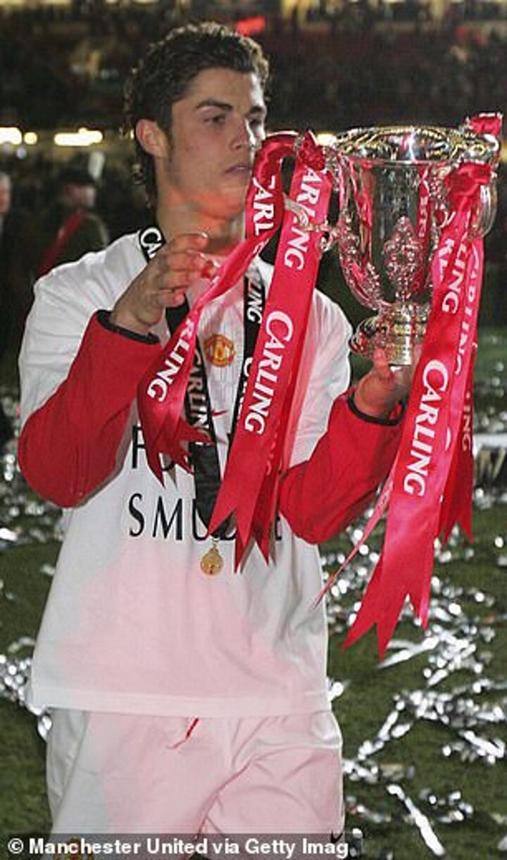 That season ended with silverware as United won the League Cup - with Ronaldo scoring the third in a 4-0 victory over Wigan Athletic in the final.