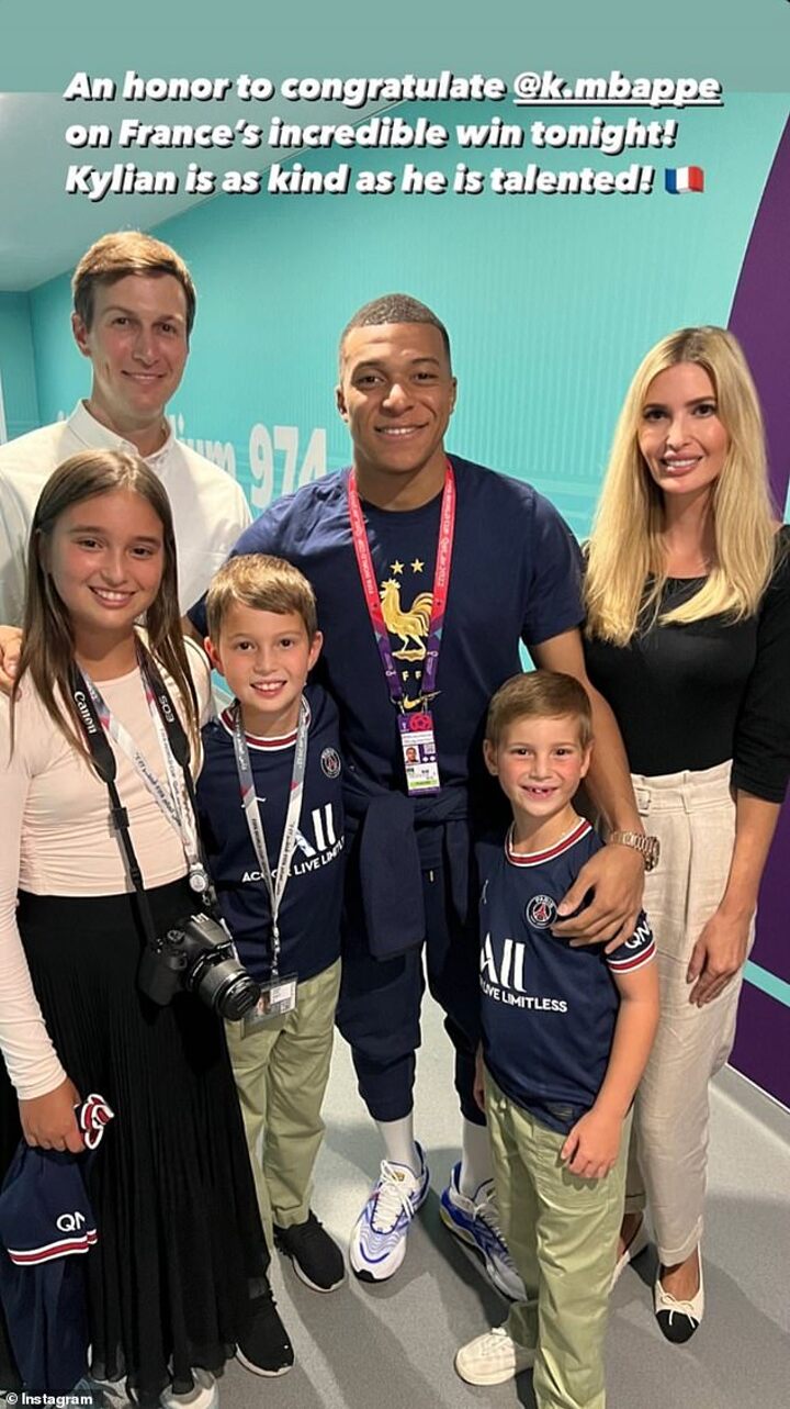 French national team star Kylian Mbappe was pictured with Donald Trump's daughter, Ivanka, husband Jared Kushner and their children following Les Bleus' thrilling 2-1 victory over Denmark.
