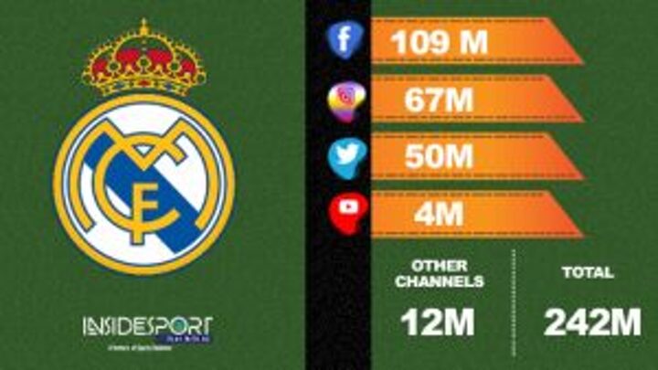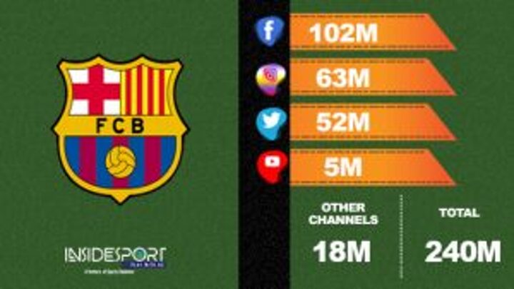 The second-placed Barcelona is the lone professional football club to have five million followers on YouTube. With 102 million fan base on Facebook and 63 million on Twitter, Barcelona aggregate to 240 million across their social media presence, which places them only behind the LaLiga rivals Real Madrid.