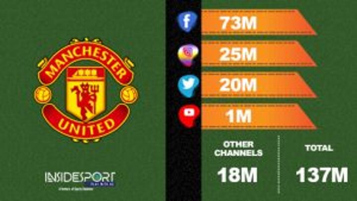 Expectedly, Manchester United is the most followed Premier League club on social media and one of the only three to have breached the 100 million fan base mark. Manchester United in the overall list is placed third with 137 million fans – 73 million come from Facebook, 25 million on Instagram and 20 million on Twitter.