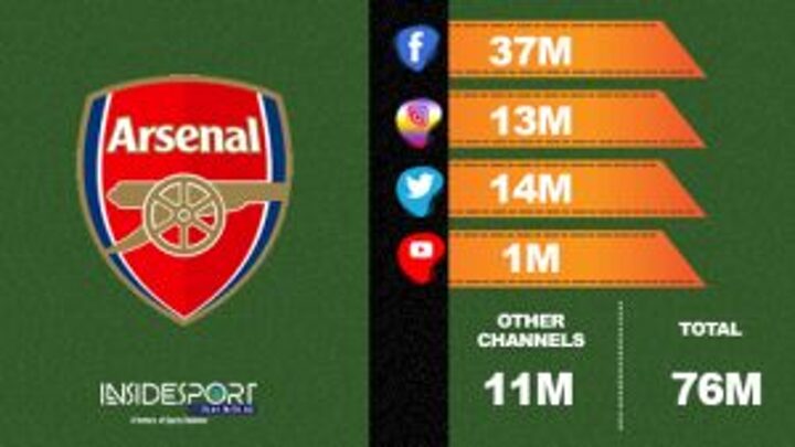 The Premier League club Arsenal is at the 6th position with 76 million fans aggregately in all over digital platforms.