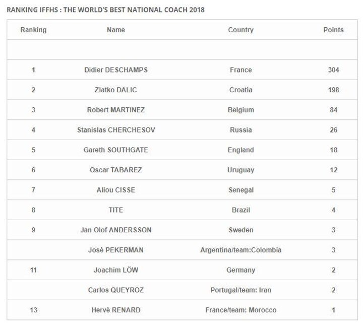 Despite tough opposition from Croatia’s Zlatko Dalic, football experts from 90 countries world wide had no hesitation in awarding Deschamps a massive 304 pooints well ahead of newcomer Dalic second on 198 and Belgium’s Martinez on 84.
