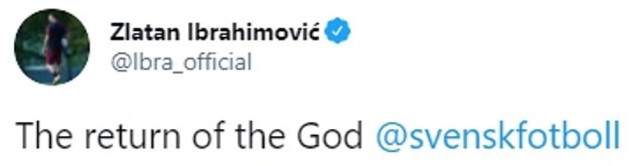 The veteran wasted no time in hailing his comeback on social media after the announcement was made - informing fans of 'the return of God' in classic Ibrahimovic style.