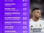 Champions League chances created rankings: Mbappé tops the list, Wirtz second