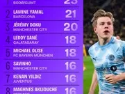 UCL take-ons completed list this season: Jens Petter Hauge 1st, Yamal 2nd
