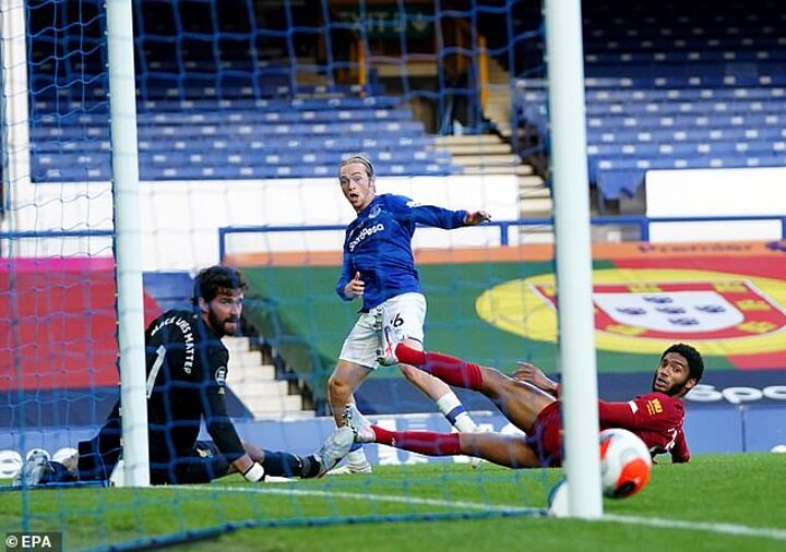 Calvert-Lewin almost made himself a hero for the blue half of the city with an audacious back-heel attempt on 79 minutes, only for Liverpool stopper Alisson to somehow keep it out.