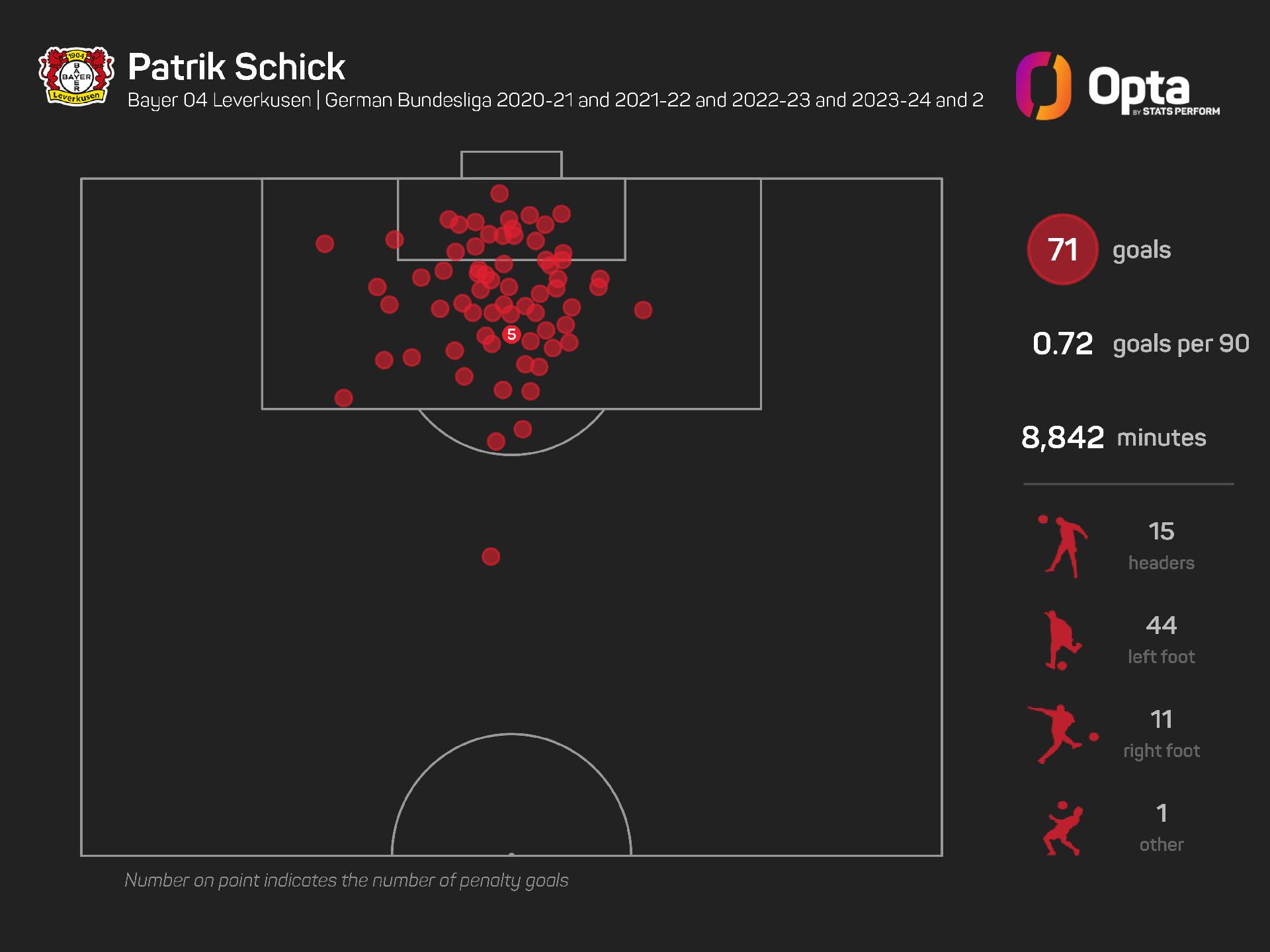 Patrik Schick has scored 71 Bundesliga goals for Leverkusen – just one shy of Herbert Waas (72) to become the third-highest all-time top-scorer for the Werkself in the top-flight.