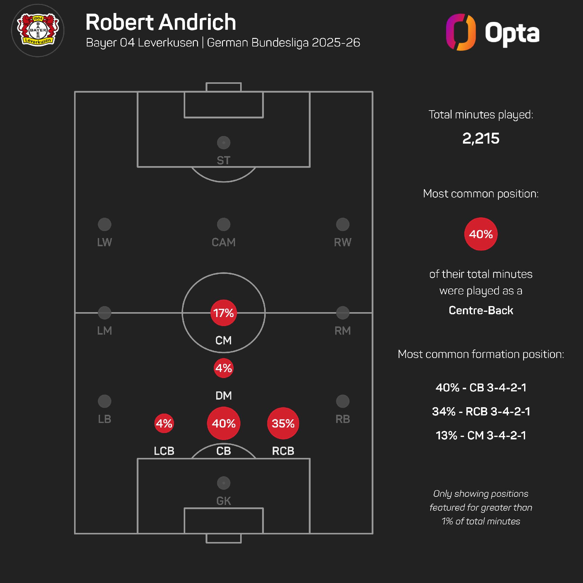 Andrich started that game on the right side of Leverkusen's back three, and the natural midfielder has played a whopping 79% of his Bundesliga minutes this season in defence.