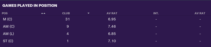 The midfielder was deployed mostly as a central midfield player, but actually produced his best performances as a number 10, his favoured position.